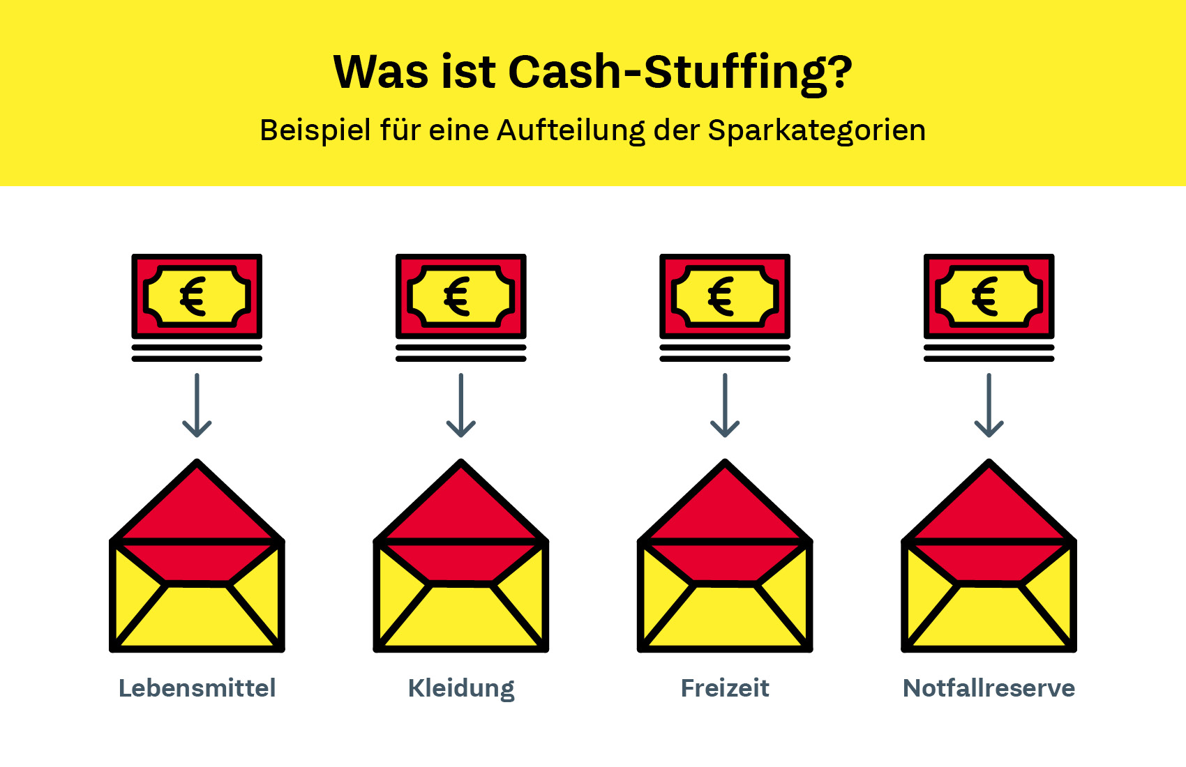 Wenn du dich fragst: „Was ist Cash Stuffing?“ – die Antwort ist simpel. Es handelt sich um eine Methode, dein Geld in physische Umschläge aufzuteilen. Jeder Umschlag steht für eine Ausgabenkategorie, zum Beispiel:
