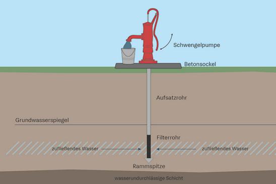Ein Rammbrunnen reicht bis zu sieben Meter in die Tiefe. Allerdings sollte der Grund dafür locker und nicht zu sehr verdichtet sein.