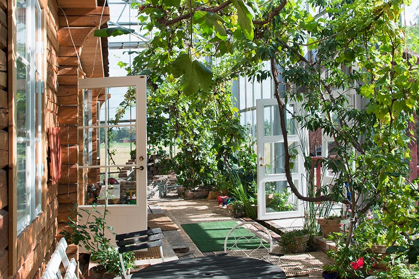 Die Klimazone für Pflanzen und Menschen ist im Gewächshaus sehr nah am toskanischen, mediterranen Klima und das, obwohl sich das Gebäude mitten in Schweden befindet. Vielleicht ist es etwas kälter im Winter, aber es gibt im Gewächshaus natürlich keinen Wind, Schnee und Regen. Und das ist besonders für die Pflanzen im Gewächshaus wichtig. Sie sind geschützt. So wachsen auch Trauben und Feigen sehr gut. Das Kernhaus liegt mit dem Klima in der Nähe eines normalen Wohnhauses in Schweden.