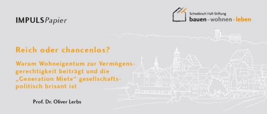 Warum die Wohneigentumsquote hierzulade so gering ist und welche Auswirkungen dies auf die soziale und ökonomische Ungleichheit hat, stellt Prof. Dr. Oliver Lerbs von der Hochschule für Polizei und öffentliche Verwaltung Nordrhein - Westfalen in seinem Impulspapier dar.